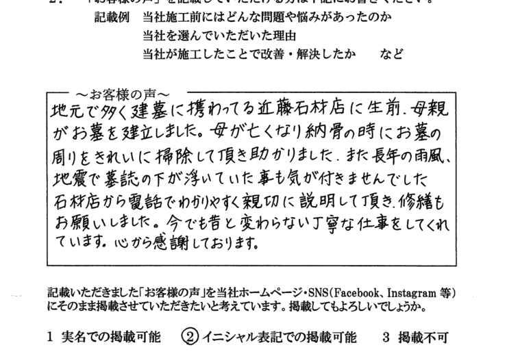 印西市でお墓修理をご依頼|「今も昔と変わらない丁寧な仕事」が叶った大網白里市在住のお客様の声